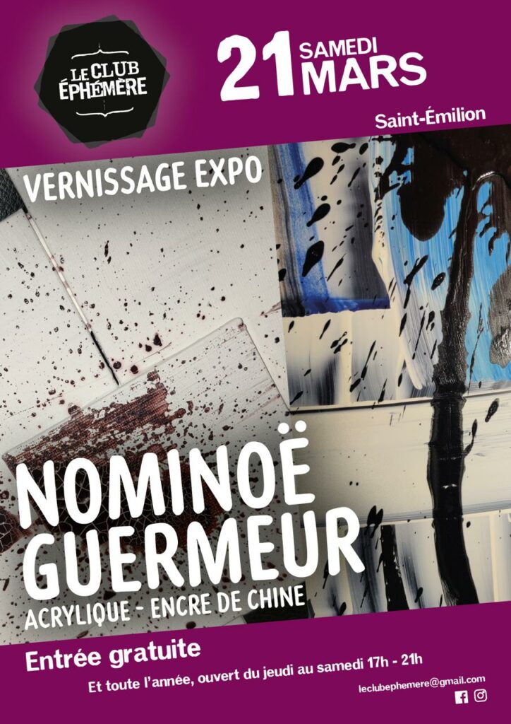 – C’est NOMINOË GUERMEUR. Il fait de la peinture abstraite à base d’acrylique et d’encre de Chine. Ben dis donc, ça va être complètement diffèrent.