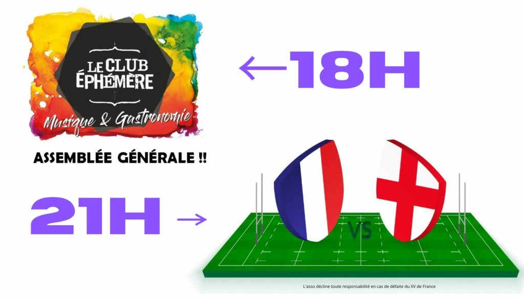 – Et c’est pas tout, ils diffusent le match de rugby France – Angleterre qui passe le soir. Et Lucie et ses crêpes sera toujours là ! Ah bah voilà, là je suis motivé pour l’AG !